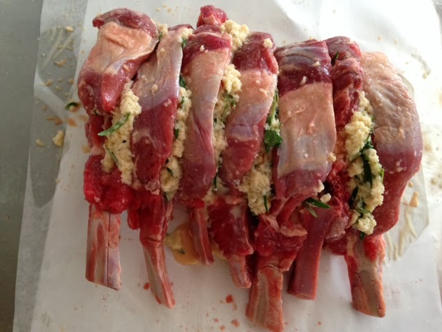 STUFFED VEAL is an easy way to add interest to tender, pink veal cutlets. Simply sandwich together the cutlets with a home made stuffing made by mixing together an egg, a handful of fresh herbs such as rosemary and oregano, a grind of salt and pepper and 4 slices of stales bread soaked in a little milk. Hold the lot together by inserting metal skewers. Wrap tightly in baking paper and foil and bake at 180 degrees conventional setting for an hour. Then unwrap and bake for another hour.
