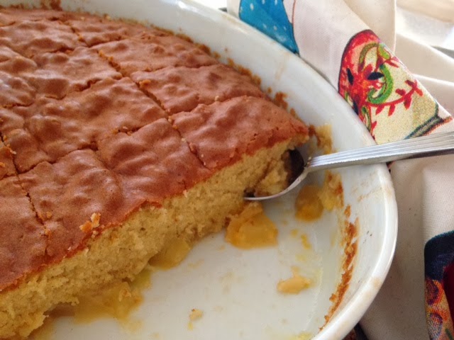 Scrape into your baking dish or cake tin and place in the oven. My tea cake cooked evenly with a golden brown , light as air top in 30 minutes. If using the 23cm baking tin, then it will take about 40 minutes. Insert a skewer into the middle and if it comes out clean, the cake is ready.