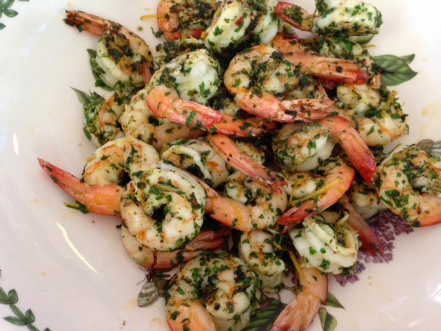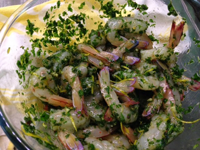 | Australian prawns soaking up the fresh herbs and lemon in this simple marinade. |