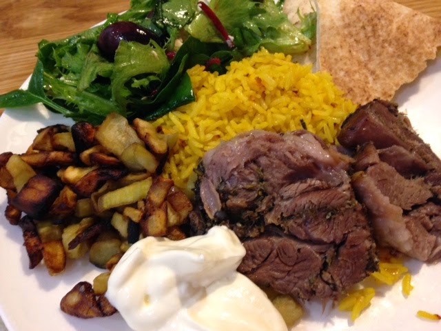 Now if the thought of making a pilaf and eggplant and a salad is just too much for you, there is another option. Just serve the lamb sliced thinly and stuffed inside warmed rounds of pita bread that have been smothered with a good quality store bought brand of hummus and loads of mixed salad leaves and sweet tomatoes.