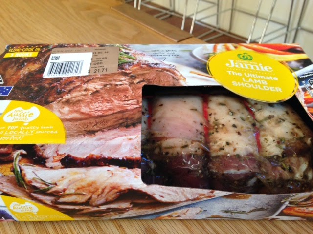 I stumbled across this already marinated, boned, rolled and neatly presented piece of Australian lamb shoulder on the Woolworth’s home shop site. We buy our dry goods and dairy online either from Coles or Woolworth’s and have it delivered to our door. It saves time as we no longer need to cart copious products from the supermarket shelves to the trolley, to the checkout then to the car and finally into the house. With a family who consumes 20 litres of milk alone every week, the on-line home shop option really lightens the load for us.
