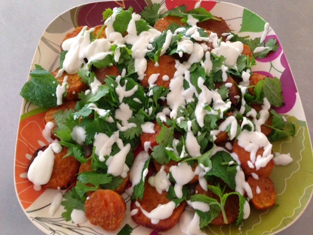 Tangy Roasted Sweet Potato with Tahini, Yoghurt and Lemon Dressing to serve 4-5 as a side or 2 – 3 as a light main.