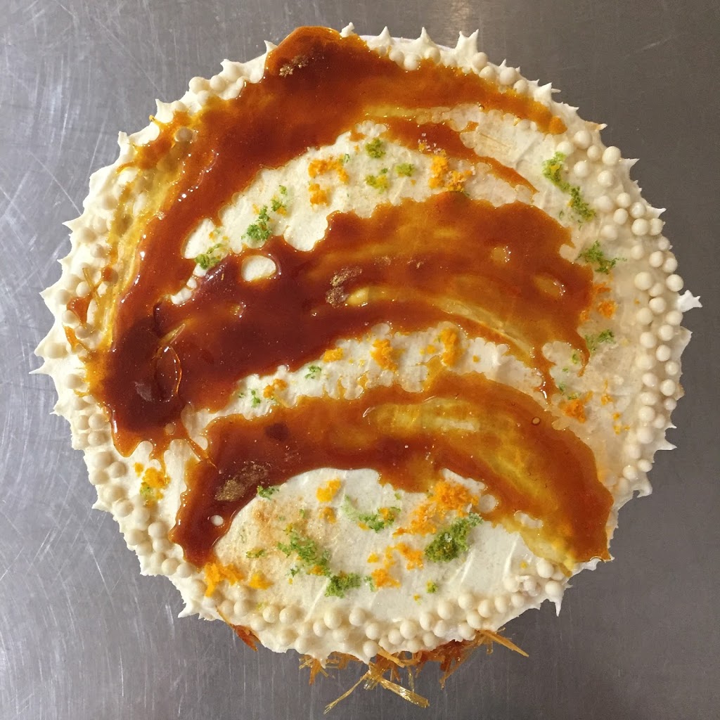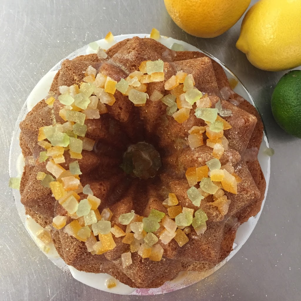 Citrus cake, vanilla, lemon lime buttercream, toffee