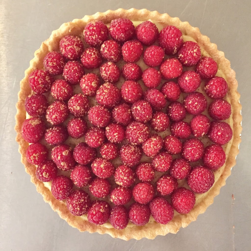 Golden vanilla, chocolate sour cream fudge, raspberry meringues